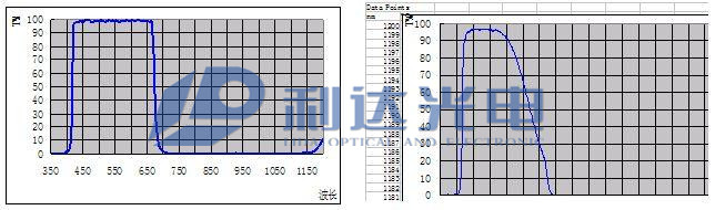 T=50%位置 短波側(cè)390(+10,-15)nm 長波側(cè)640(+15,-10)nm